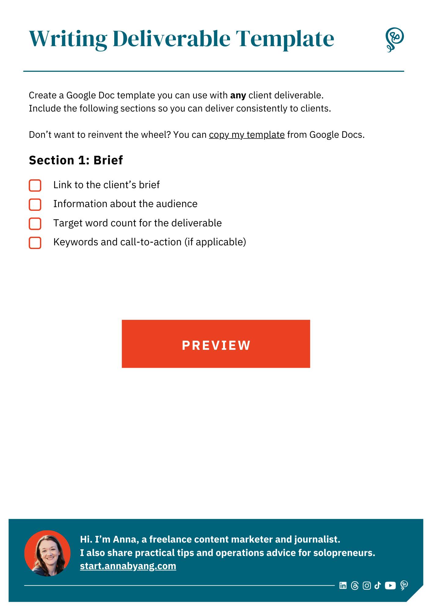 Do your client drafts feel chaotic? Download this checklist and reusable template in Google Docs that will work with any deliverable.